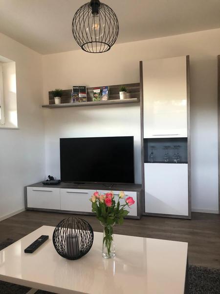 Unsere Ferienwohnung mit 75 m² wurde 2024 in unserem Neubau ebenerdig gemütlich eingerichtet.